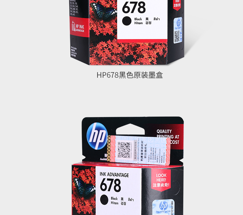 惠普原装678彩色/黑色墨盒适用于hp2648 4518 3548 1518 1018 4648 2548打印机