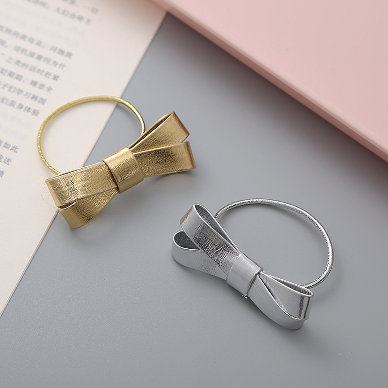 女孩文艺韩版金色银色Pu蝴蝶结发圈学生头绳公主发饰头饰儿童发夹